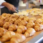 每天早上客人可以在饭店享用早餐.